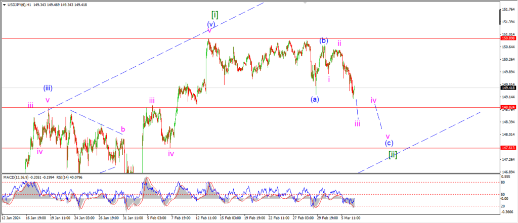 and I am looking at a low for wave (c) of [ii] near the 147.00 handle again.