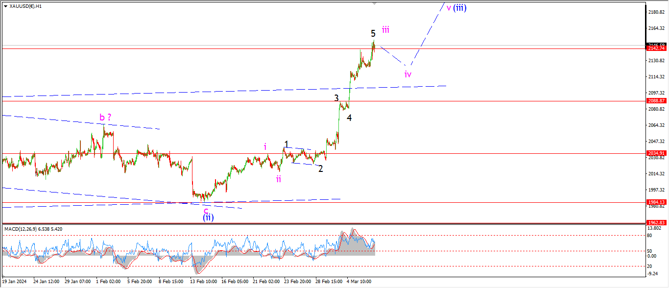 Wave ‘iii’ of (i) has traced out five waves up at todays highs.