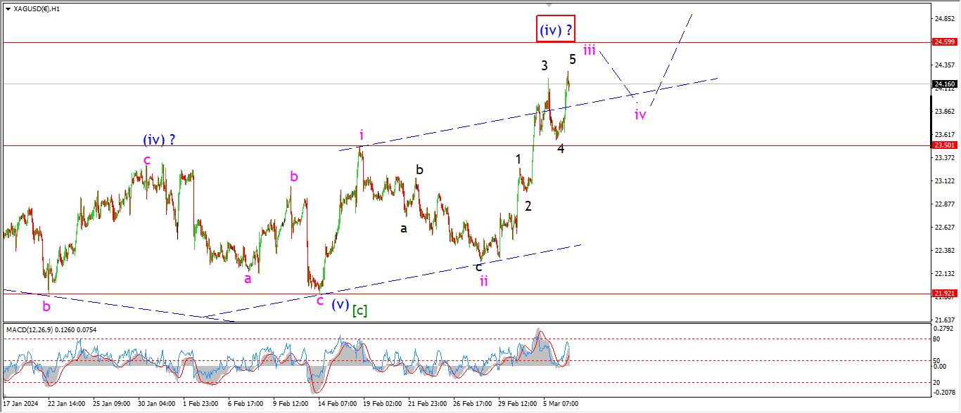Silver actually managed to push higher today which has strengthened this short term count a little.