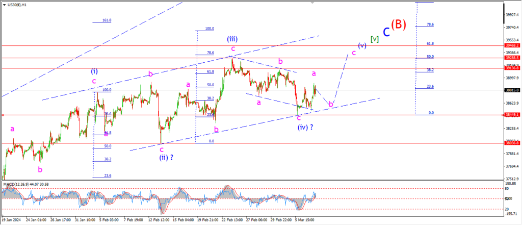 So the target for wave (v) remains at 39460 at the 62% Fib extension level as shown.