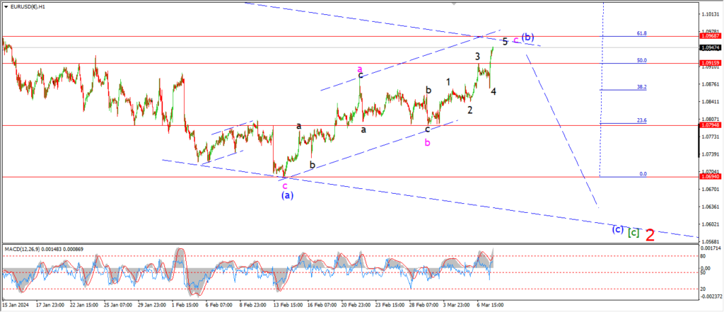 I am looking at 1.0968 as a target for wave (b) to complete.