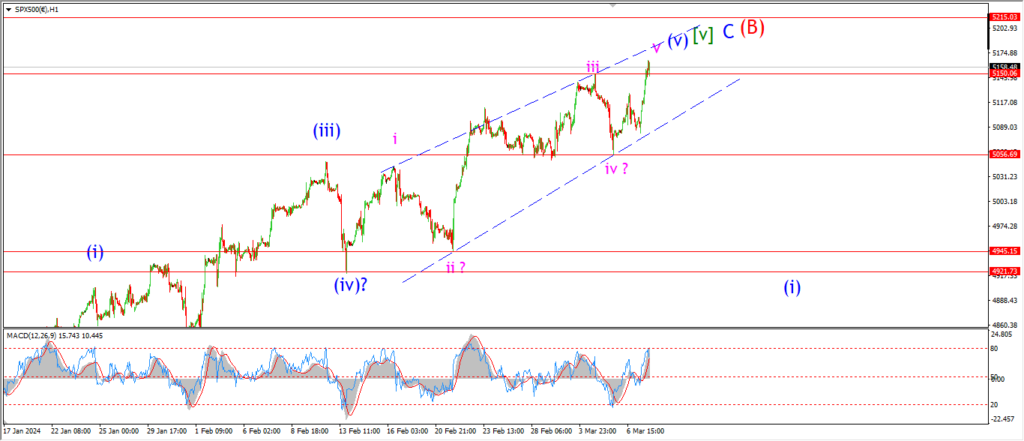 A drop back below the wave ‘iv’ low at 5056 again will be a good hint that wave (v) is done.