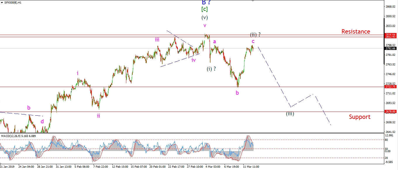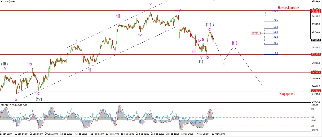 Watch for wave ‘c’ of ‘ii’ to complete and wave ‘iii’ down to begin.
