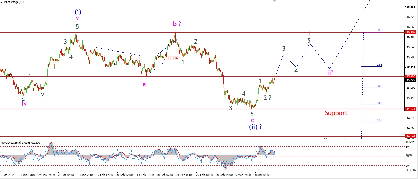 Silver is rising but it is unclear if this is wave ‘3’ of ‘i’,