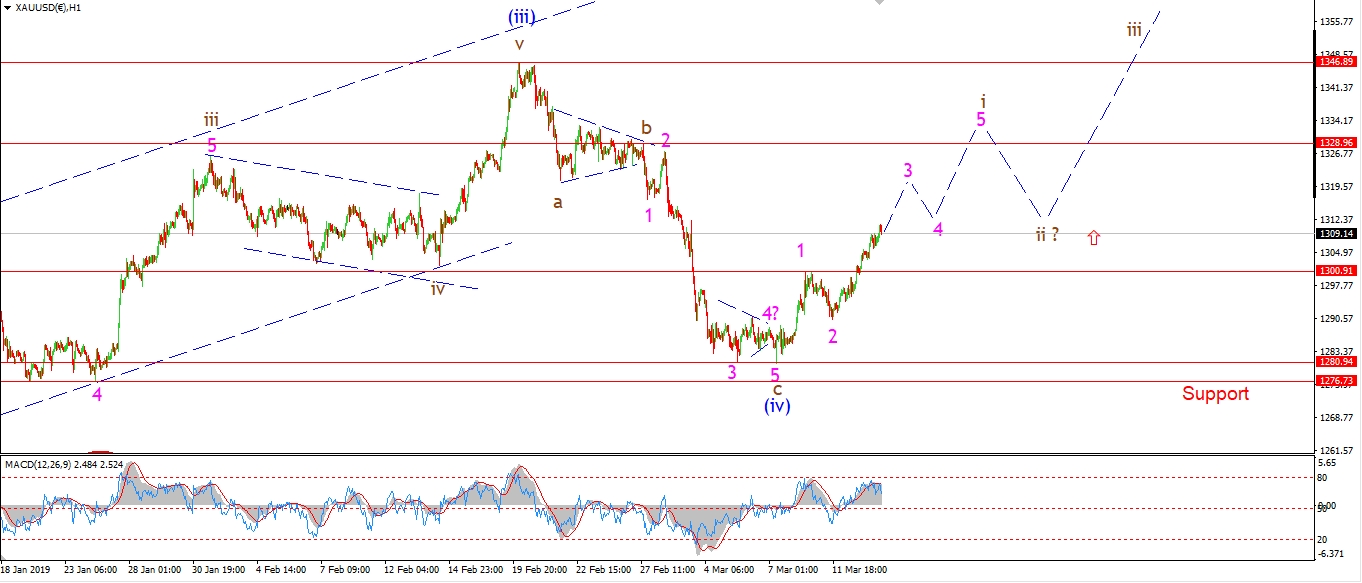 GOLD is rising again today in a possible wave ‘3’ of ‘i’ of (v).