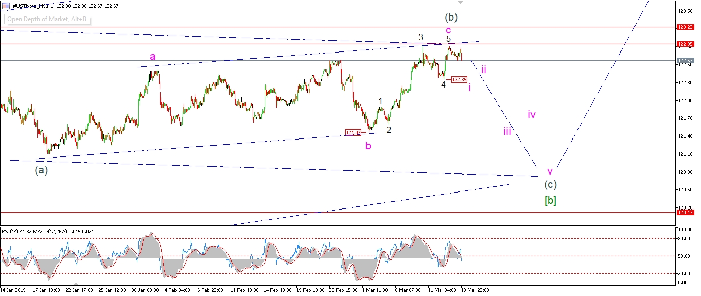 Watch for the high at 122.95 to hold and wave ‘i’ of (c) to continue lower.