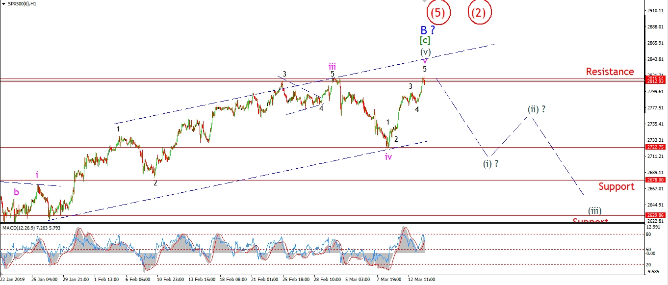 Watch for wave ‘v’ of (v) to complete tomorrow and we may even see the turn down begin into wave (i).