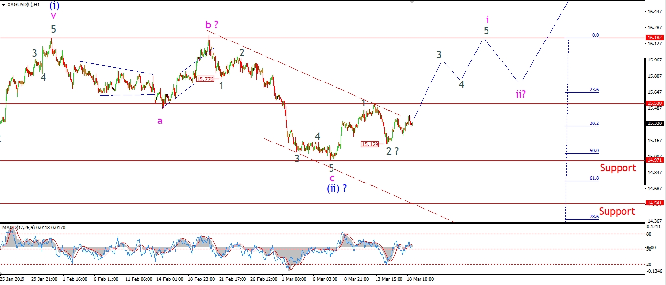 An impulsive break of 15.53 should confirm that wave ‘3’ of ‘i’ has begun.