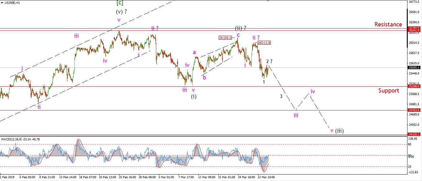 Watch for wave ‘iii’ down to break 25208 and continue lower.