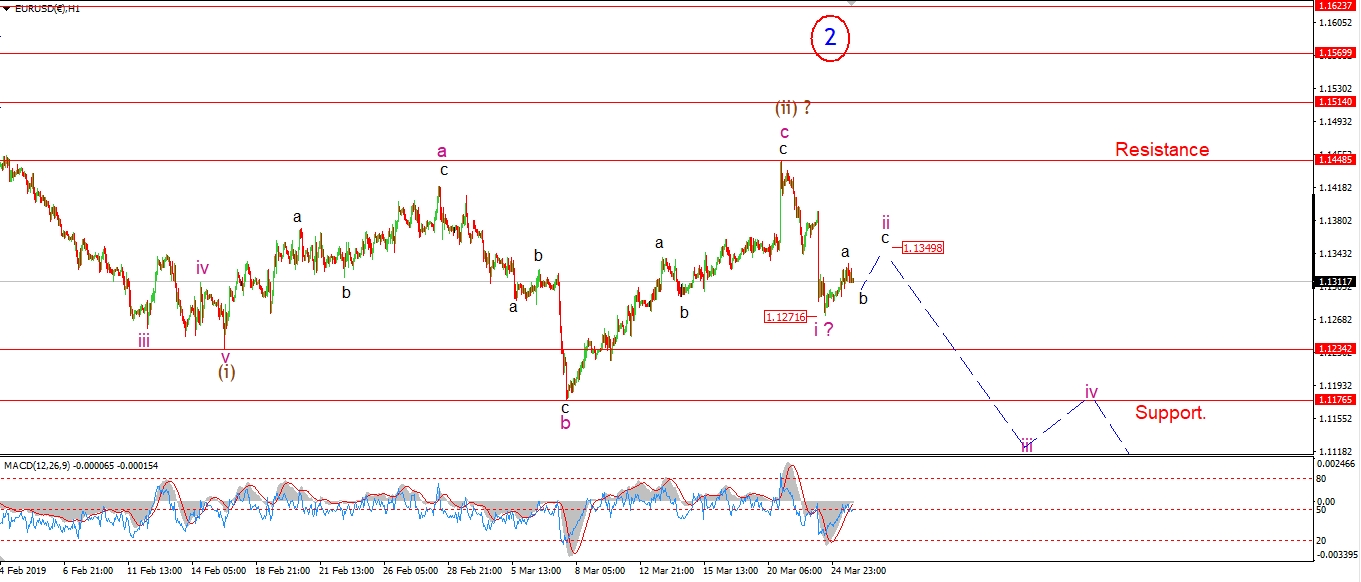 Watch for wave ‘ii’ to complete at about 1.1350 and then turn lower again into wave ‘iii’.