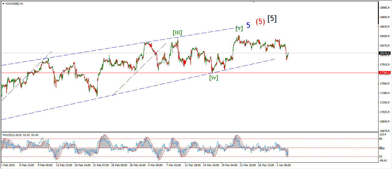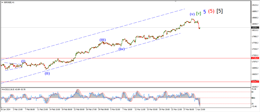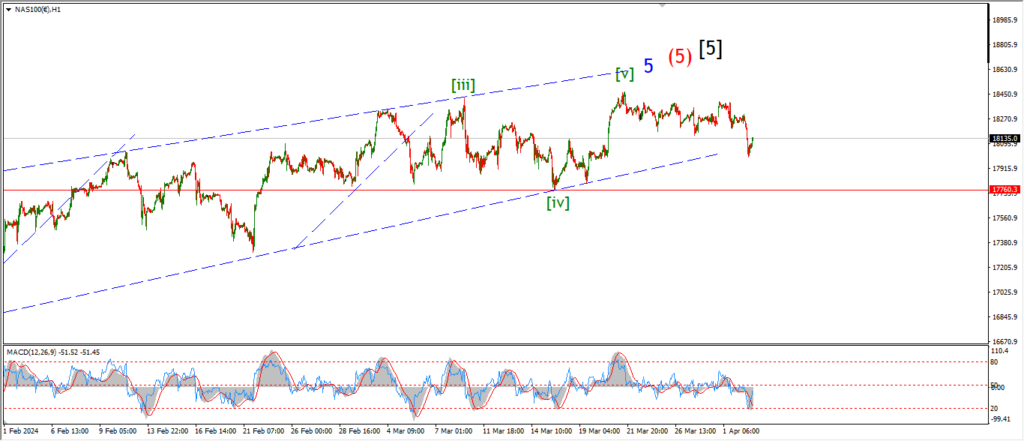 Watch for the market to continue the move lower and possibly complete five waves down off the high.