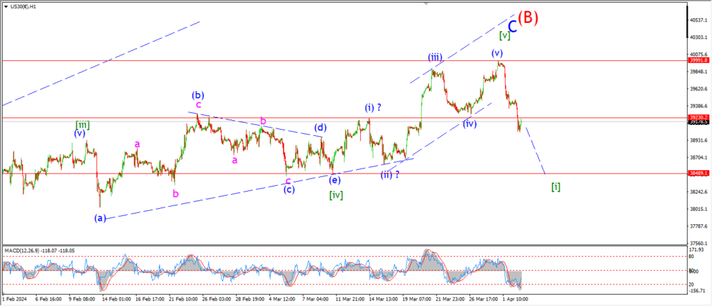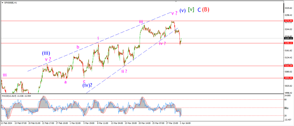 The S&P dropped below the wave ‘i’ high today and now we have a small correction higher in play this evening.