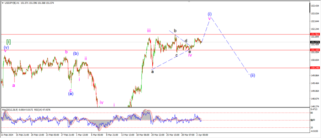 I want to see a break of 152.00 at a minimum to close out this rally in wave (i).