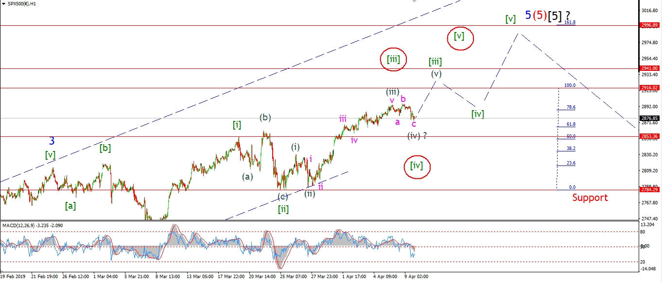 The market is lower today but this drop is shown as wave ‘c’ of (iv).