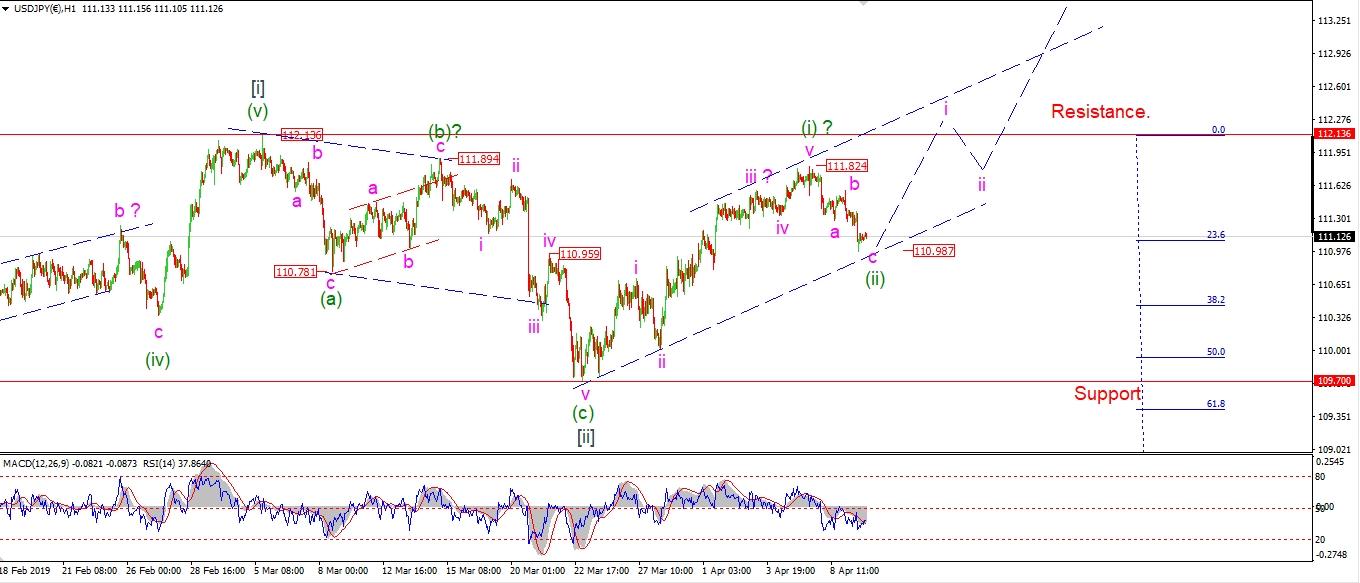 Wave (iii) up should begin with a break of 111.83 in wave ‘i’.