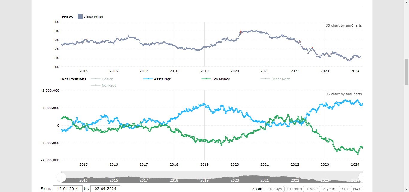 The USDX can be viewed in the same way. the dollar has been sold all throughout the last year off that 114 high but we are witnessing a base building going on here. the price is about 10% off the last high, and now we have a futures market in a position similar to the 2021 lows again. it is an interesting flipside to the bonds situation. and both of these markets are a very interesting mirror to the risk assets markets in general. FYI.