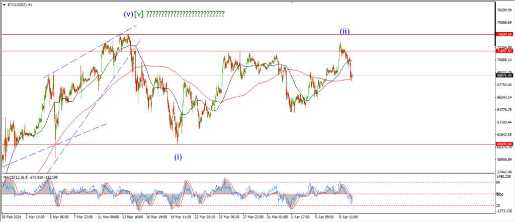 watch for wave ‘v’ to continue higher as shown to complete the larger wave (i) pattern.