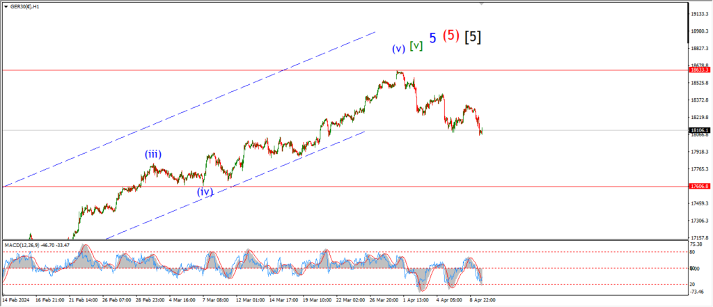 The price has also completed a three wave pattern higher in wave [ii] at todays highs.