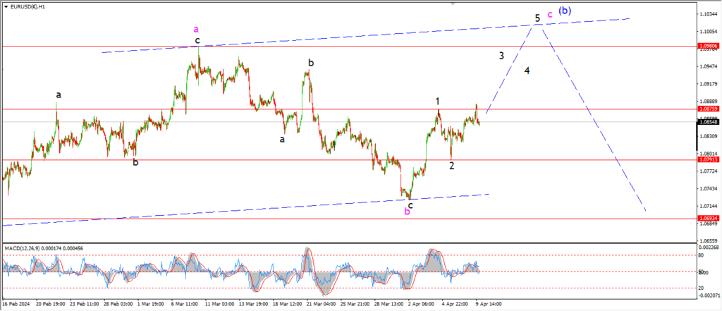 And that pattern should extend higher in a five wave form to complete wave ‘3’ of ‘c’ near the recent high at 1.0980.