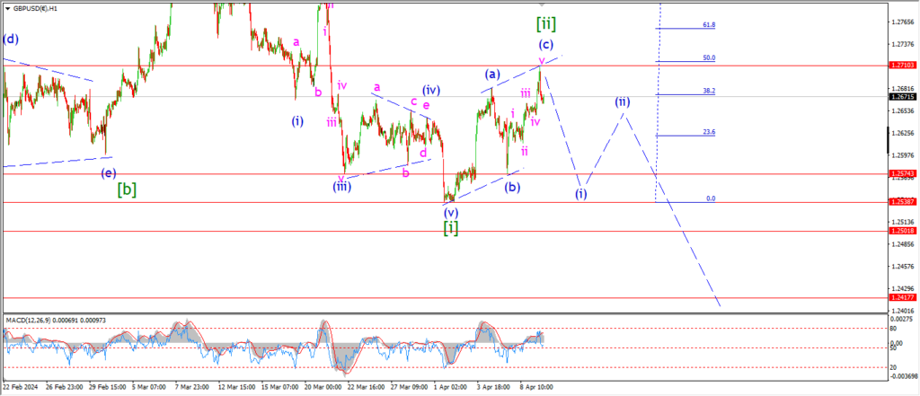 Wave (i) of [iii] will be confirmed with a drop back below 1.2574.