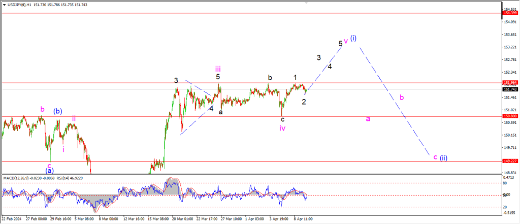 Wave ‘3’ of ‘v’ should now turn higher towards the 153.00 level tomorrow.