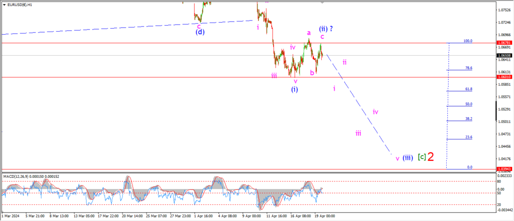 Wave ‘i’ of (iii) must now fall back below 1.06 to confirm wave (iii) is underway.