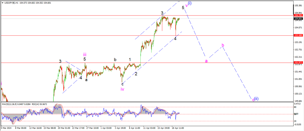 Watch for wave ‘v’ to complete with a break above 154.78.