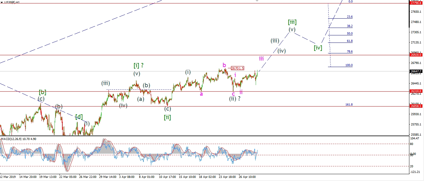 watch for 26310 to hold and wave ‘iii’ of (iii) to break above 26700.