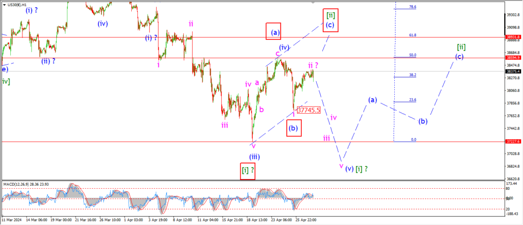 A break of the wave ‘i’ low at 37745 will signal wave ‘iii’ of (v) is underway.