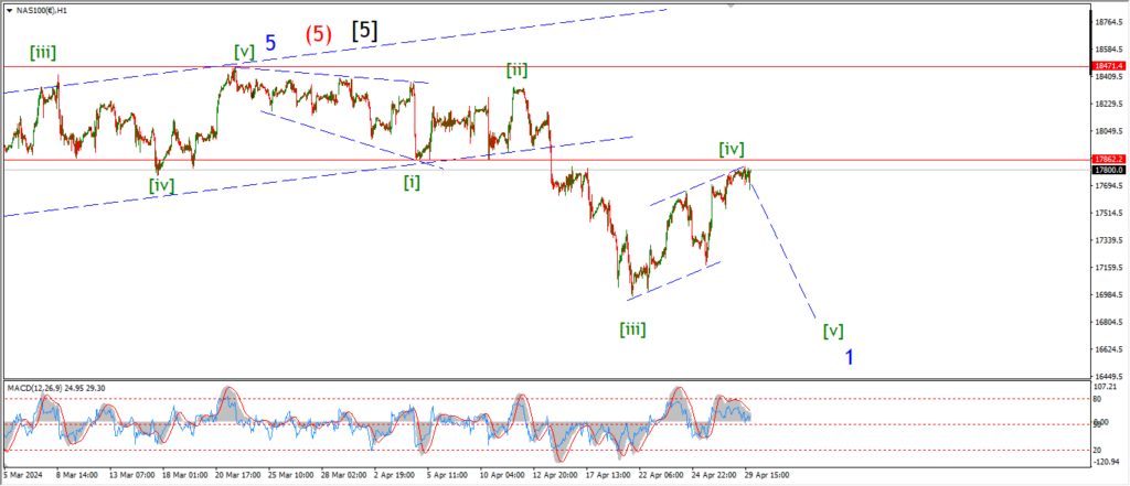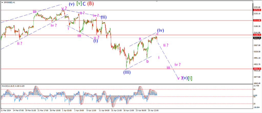 so lets see if tomorrow brings a reversal into wave ‘i’ down as shown.