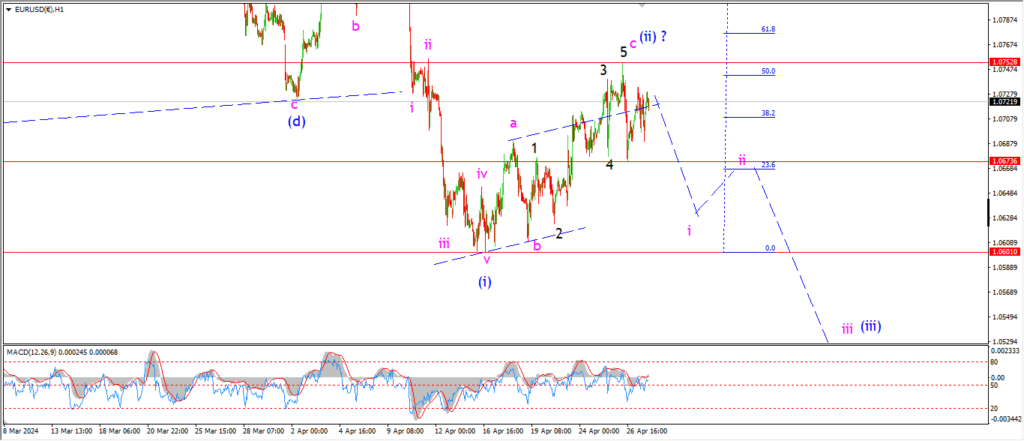The wave (ii) high continues to hold today at 1.0753 and as long as that level holds,