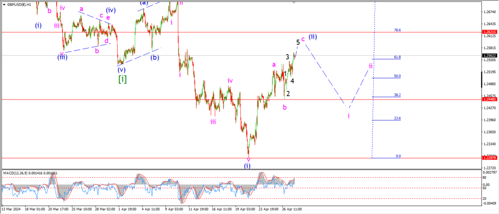 Wave ‘i’ of (iii) should then turn lower and break below the wave ‘b’ low at 1.2448.