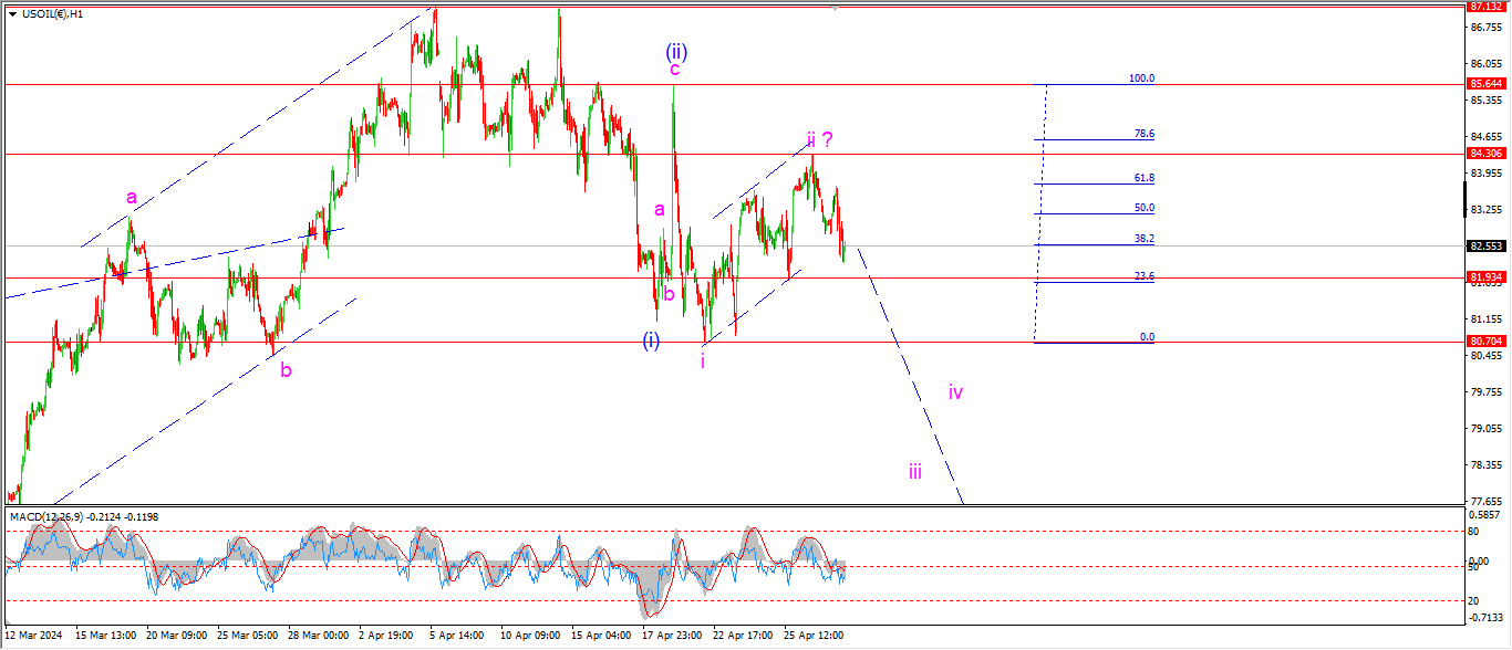 The price must drop beck below the wave ‘i’ low at 80.70 again to confirm wave ‘iii’ of (iii) is underway.