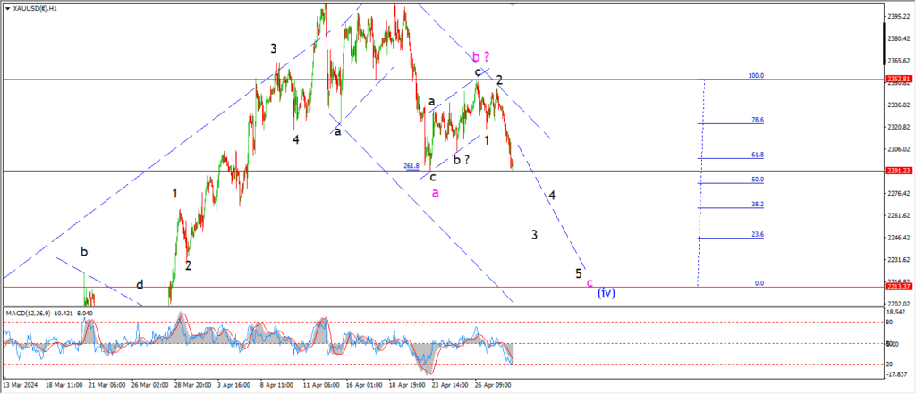 Wave ‘c’ should trace out a five wave decline towards 2213 over the coming days.