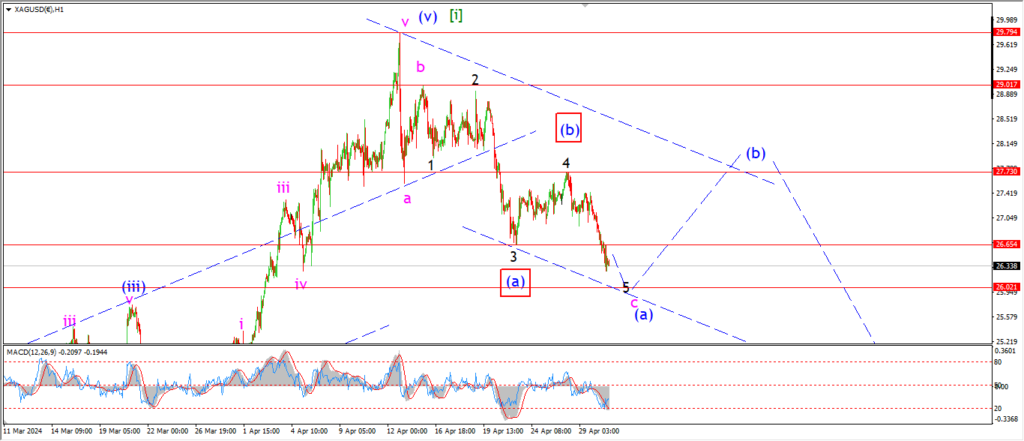 Silver has made good progress into wave ‘5’ of ‘c’ of (a) today.