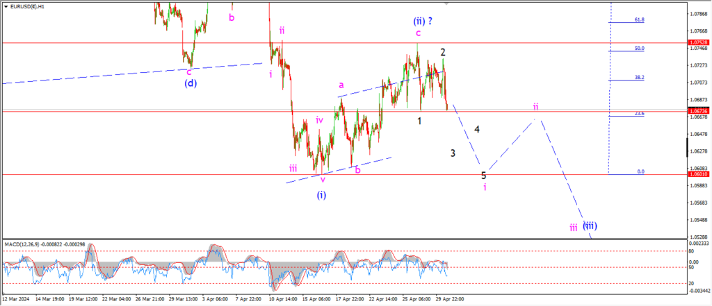 And todays move has now fallen back into the wave ‘1’ low at 1.0673 again.