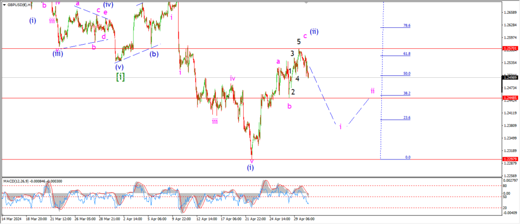 The turn down has not broken the wave ‘b’ low at 1.2448 yet,