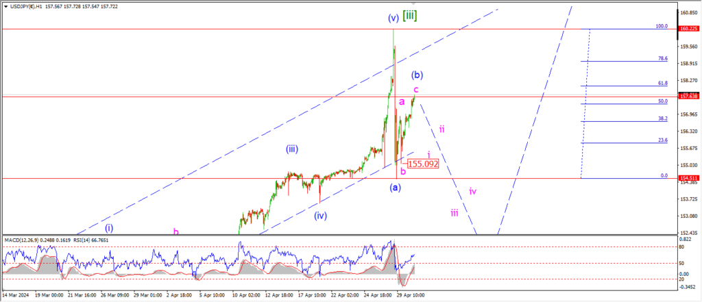 USDJPY moved higher today into wave ‘c’ of (b) as suggested.