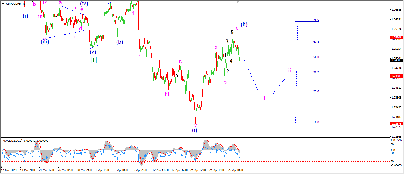 EURUSD has moved back off the wave (ii) high today and now I can look towards the larger wave (iii) decline.