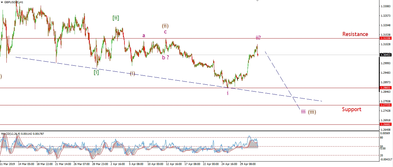 The price will have to break the wave ‘i’ low at 1.2865 to confirm wave ‘iii’.