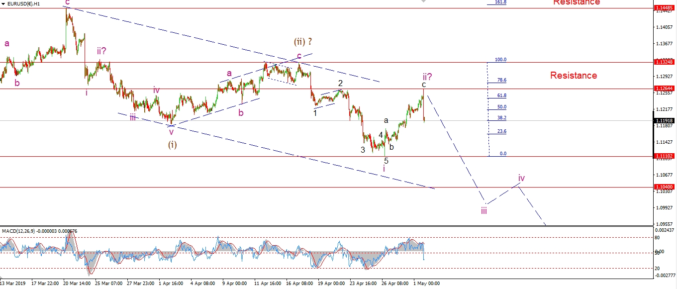 We should see a 5/3 impulse wave lower develop off the wave (ii) high.