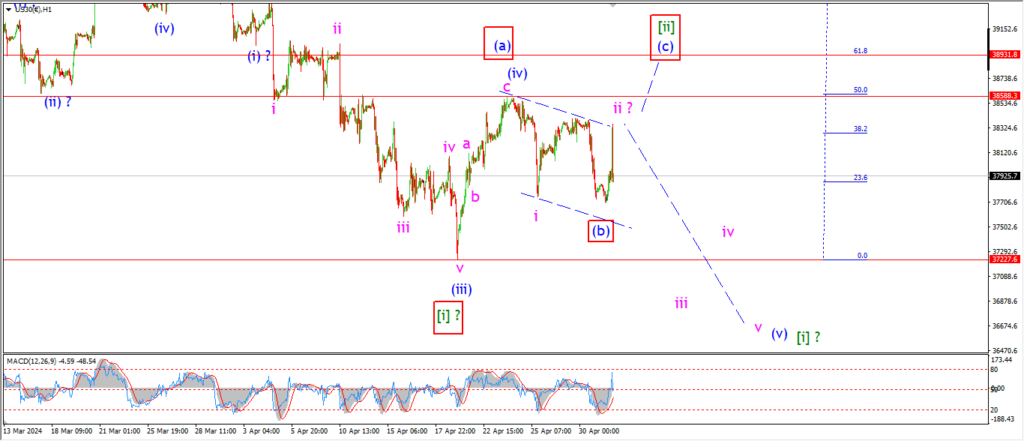 this requires an acceleration lower tomorrow into support at 37227 in wave ‘iii’ of (v).
