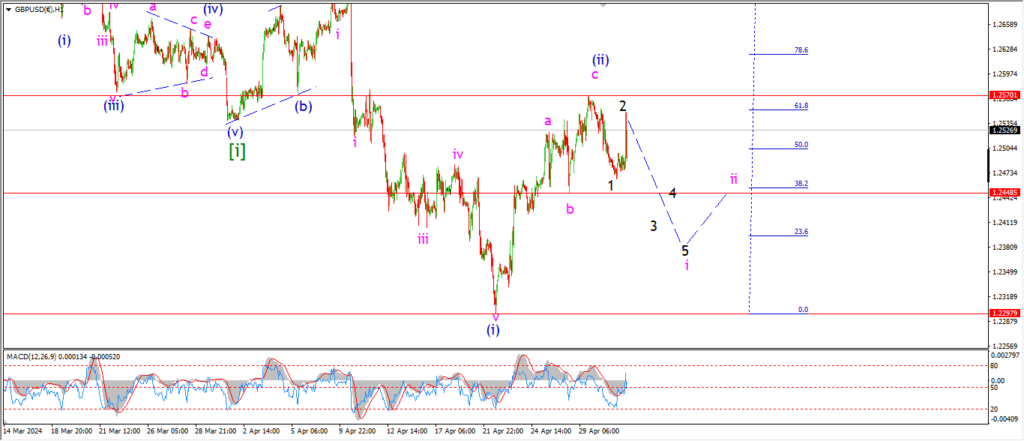 Watch for wave ‘3’ of ‘i’ to turn lower and break 1.2448.