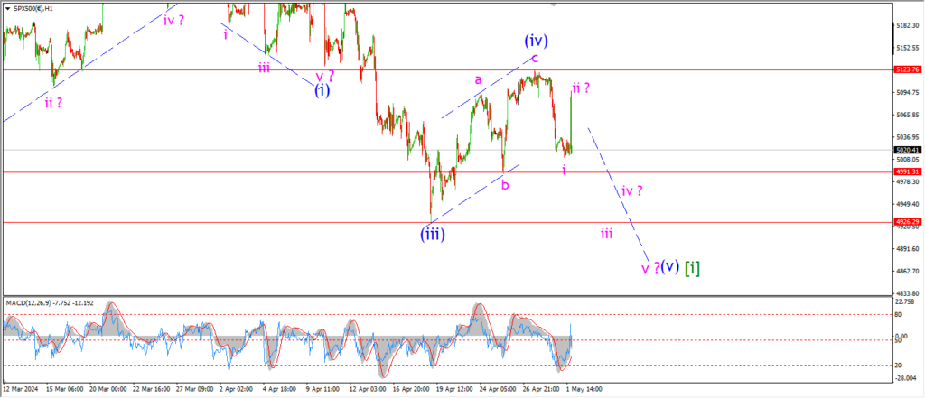 I am suggesting that the lower high just posted is wave ‘2’ of ‘i’.