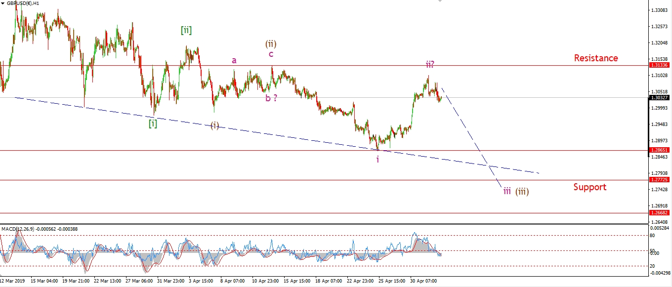 1.3133 must hold and wave ‘iii’ of (iii) down will be confirmed with a break of 1.2865.