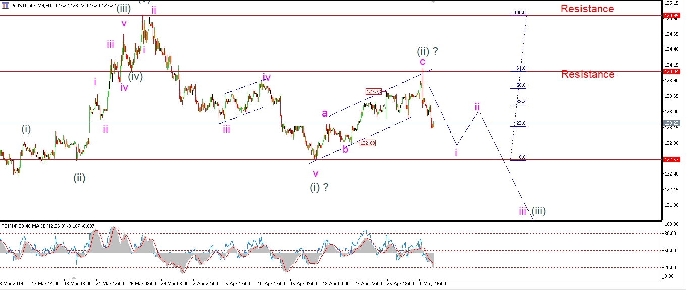 The 10YR continued lower today in a possible wave ‘i’ of (iii).