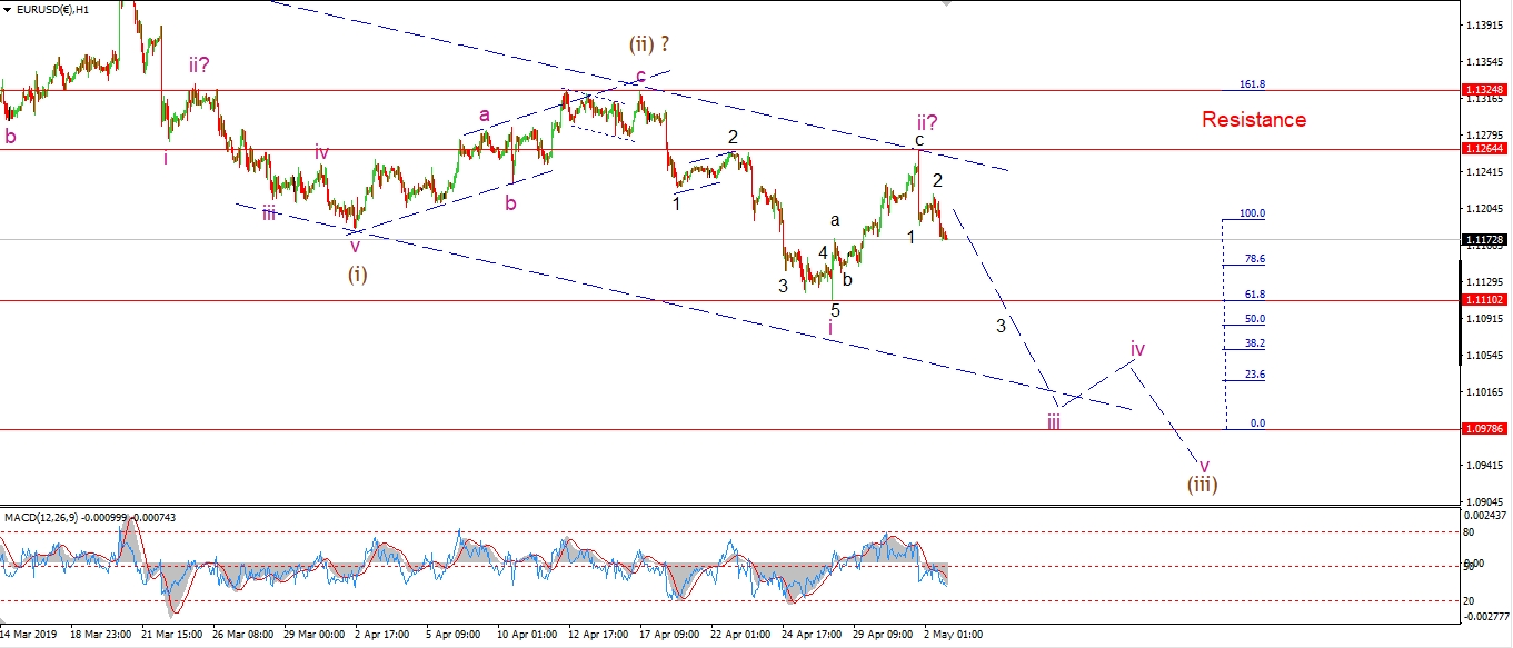 Watch for wave 1.1264 to hold and wave ‘iii’ to continue lower.