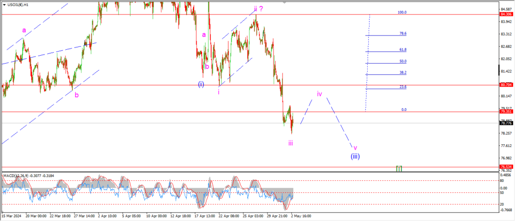 watch for wave ‘iv’ to trace out three waves up and top out below 80.00.