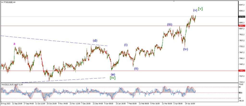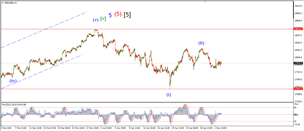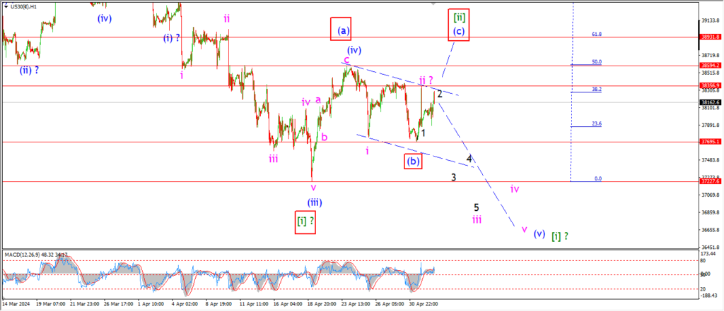 Wave ‘iii’ of (v) should continue lower tomorrow and that wave may even break to a new low for the pattern if all goes well.