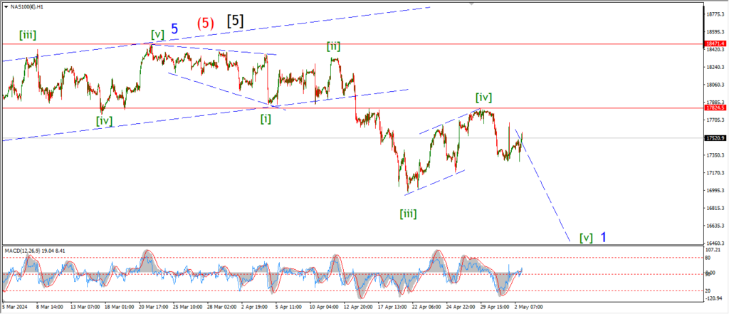 The DOW has not broken lower into wave ‘iii’ of (v) yet.